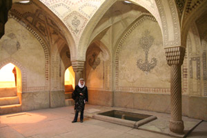 prison sous les pahlavis (1925). Cette forteresse bien préservée renferme une cour plantée d'agrumes et des bains. Dans une de ses salles est exposées une série de photos anciennes de Shiraz, bien plaisante à découvrir. L'inclinaison étrange de la tour sud-est à attiré les experts de la tour de Pise. |