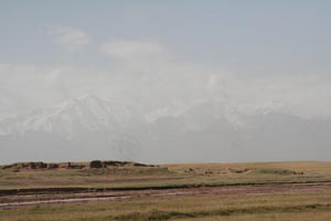 Kirghizstan. Il y a une heure de décalage horaire avec l'Ouzbékistan ce qui nous fait maintenant 4h de plus qu'en France. |
