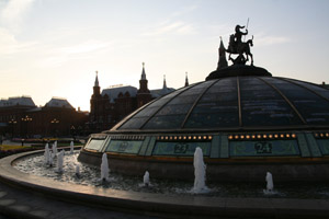 la route qu'en pleine journée... Nous arrivons aisément au centre-ville et c'est ainsi que nous nous retrouvons à 7h 30 sur la Place Rouge sous un beau soleil levant, notre 4x4 garé à 100 m de là . Il n'y a personne, la Place est à nous. On se promène ensuite dans les environs en attendant l'ouverture des sites et des magasins (10h). Quand on revient sur la Place plus tard, des barrières en empêchent l'accès. Notre lever matinal à donc été récompensé. |