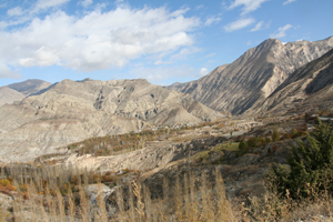 seront plus clémentes, surtout la nuit. Cette région montagneuse appartenait au Moyen-Age au royaume de Géorgie et les nombreuses églises et châteaux qui l'émaillent témoignent de ce passé. Les paysages d'automne bordent notre route et les arbres arborent leur parure rouge et or. Nombreux sont les peupliers le long des cours d'eau. |
